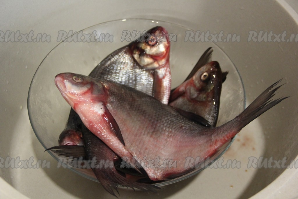 Лещей почистить от внутренностей и чешуи. Удалить головы, хвост и плавники.