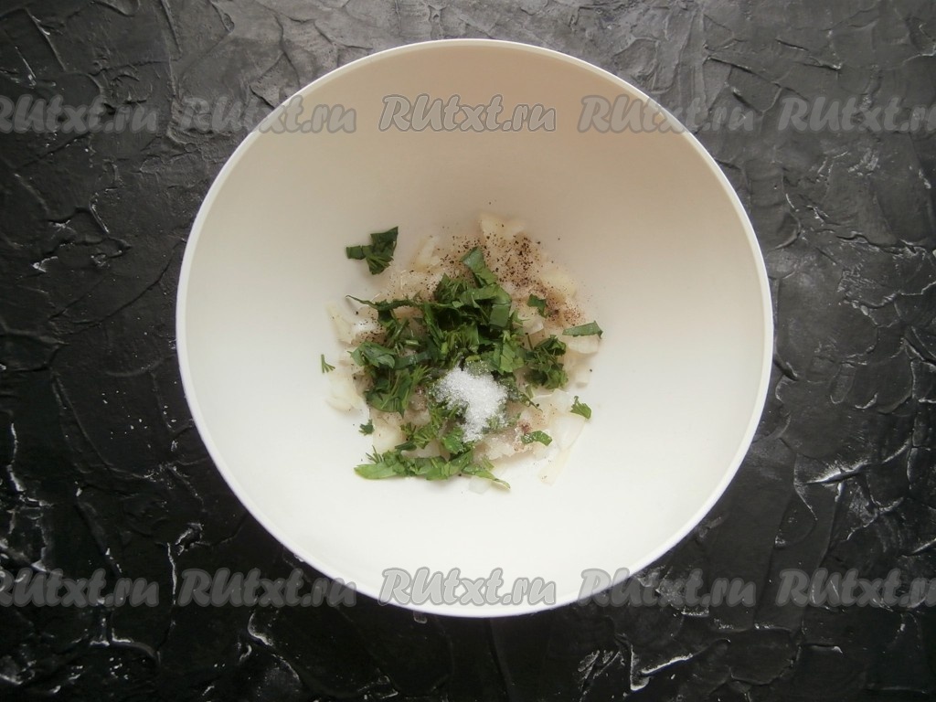 Сюда же добавить немного сахара и измельчённую зелень.