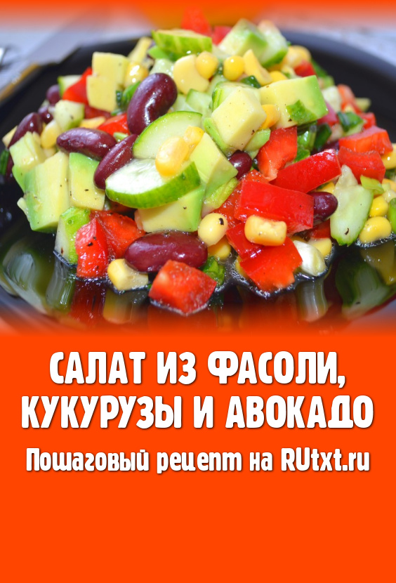 Полезный и сытный салат из кукурузы, фасоли и авокадо, приготовленный по этому рецепту, удивит Вас ярким красками и порадует прекрасным вкусом.