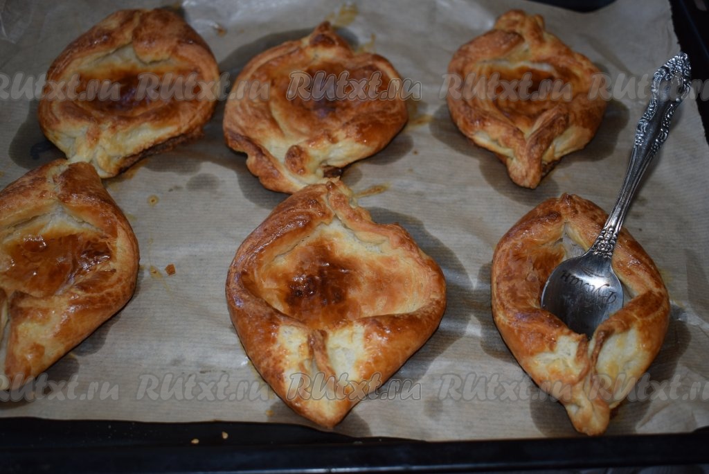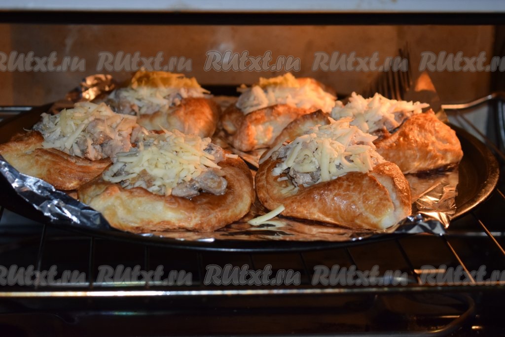 Противень с лодочками отправляем минут на 35 в духовку, разогретую до 180 градусов. В процессе выпекания лодочки будут "надуваться" и края у них станут расходиться, пусть вас это не пугает, просто возьмите 2 чайные ложки и концами ручек сожмите края, которые раскрываются, плотно сжимая их.