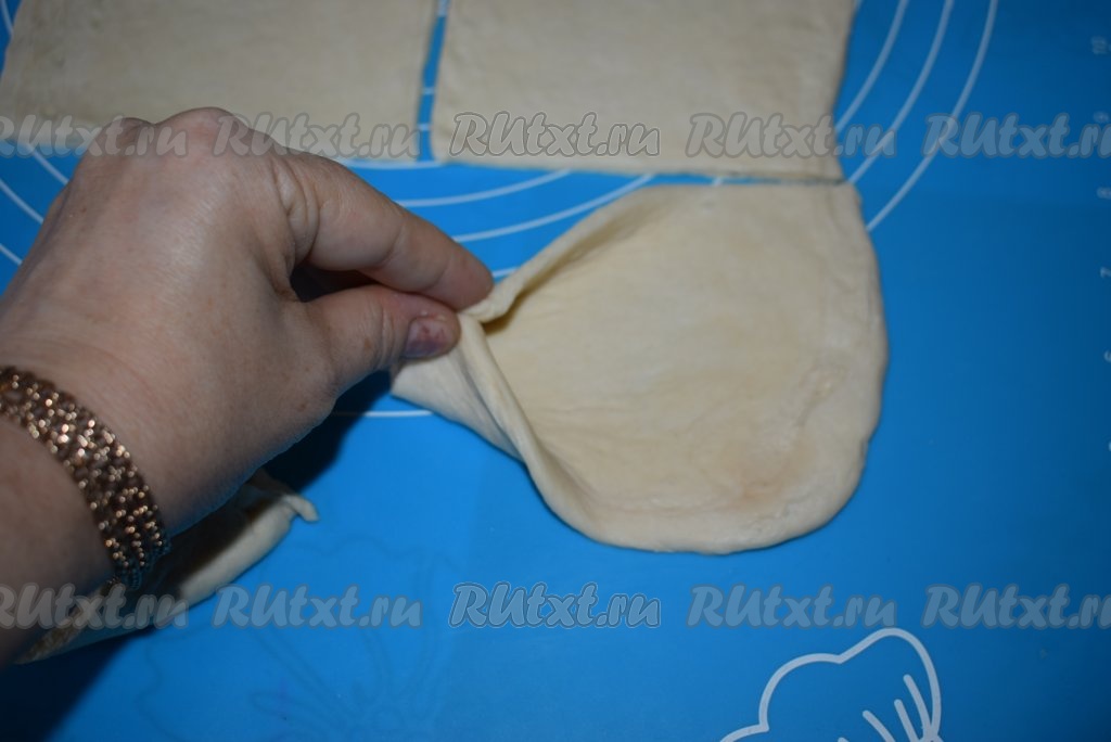 Далее защипываем края каждого квадрата, формируя лодочку.