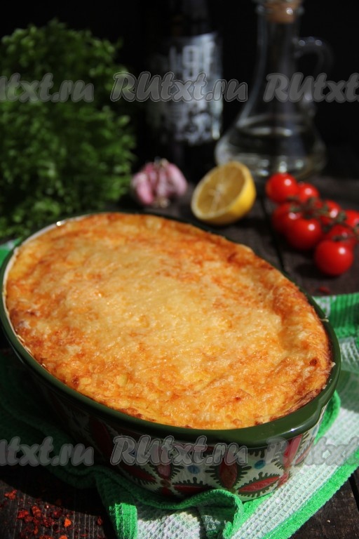 Поверх этого слоя картофельного пюре выложить натёртый твёрдый сыр.