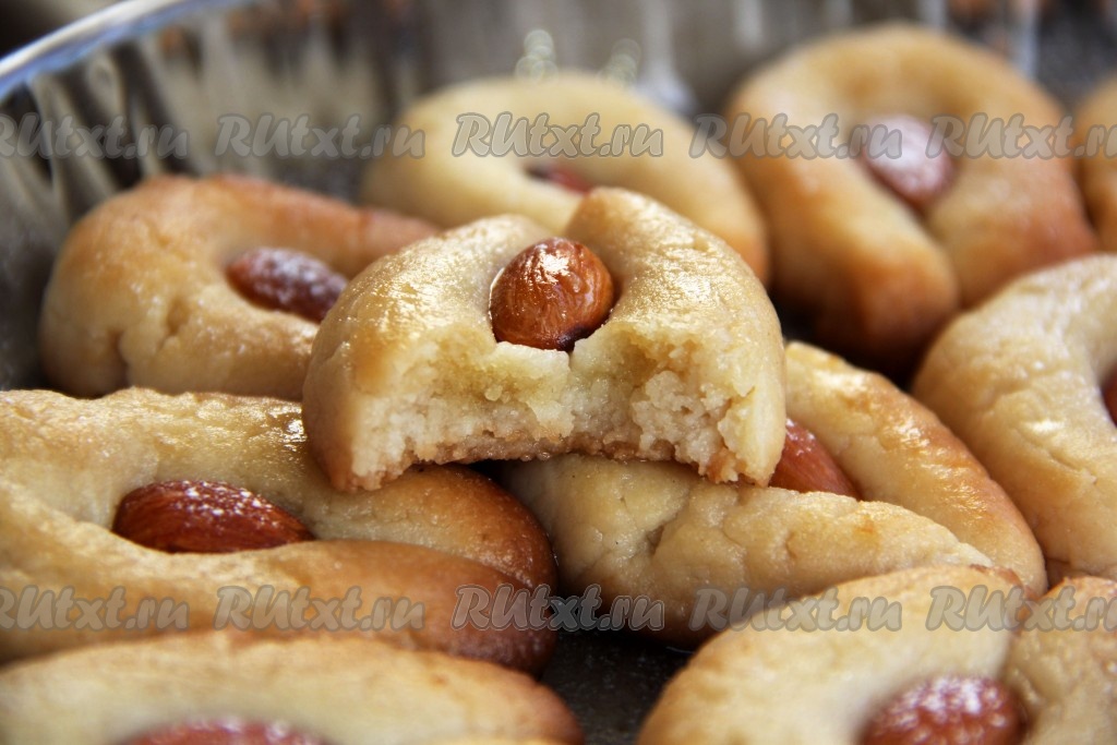 Недавно приготовила вкусное, ароматное песочное печенье с миндалём. Я придала ему форму подковы. После выпечки печенюшки получаются хрустящими. Я же предлагаю готовое печенье залить сахарным сиропом и тогда оно хорошо пропитается и превратится в незабываемое лакомство. Приготовьте нежное, ароматное печенье с миндалём и его замечательный вкус украсит домашнего чаепития!