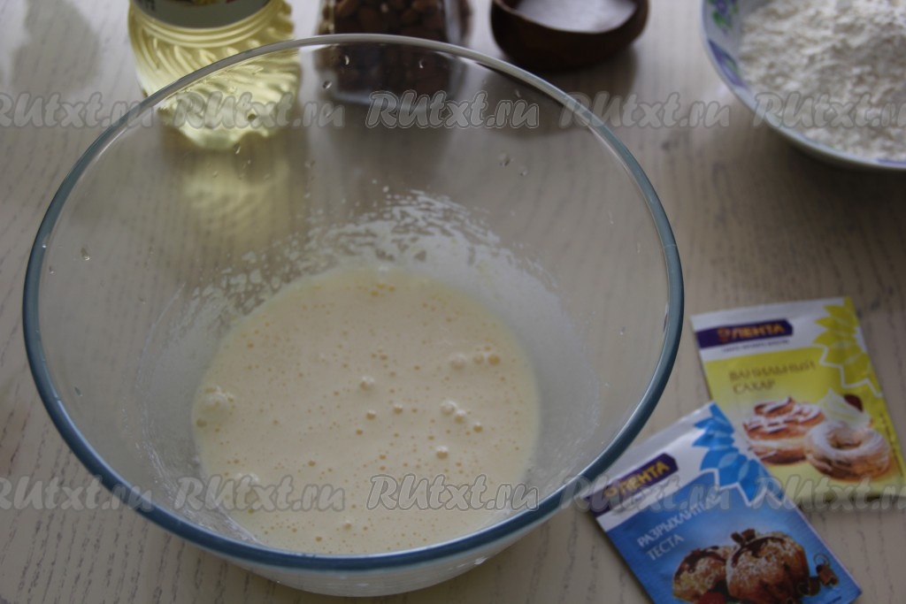 Яйцо соединить с сахаром в достаточно объёмной миске.