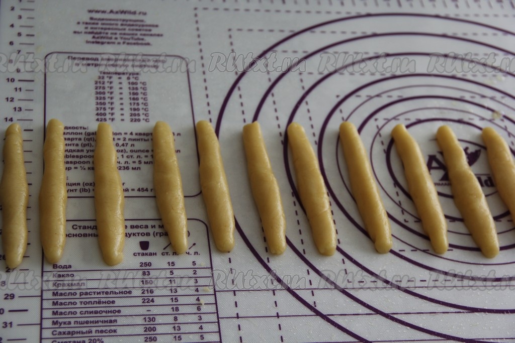 Из каждого шарика скатать колбаску.