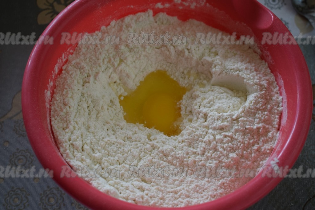 В миску с получившейся смесью добавим яйцо.