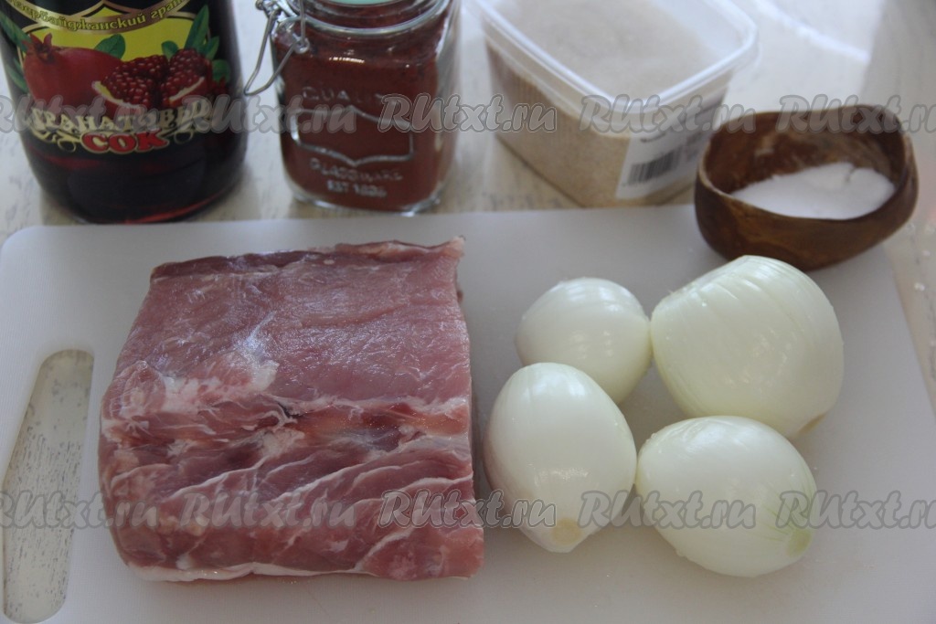 Предлагаю рецепт наивкуснейшего шашлыка из свинины, предварительно замоченной в маринаде из гранатового сока и лука. Мясо получается очень нежным и сочным. Лучше мариновать кусочки свинины часов 10, но можно и часа 3. Для запекания я использовала мякоть свинины (карбонат). Готовить лучше всего на мангале, используя жар углей. Подавать этот нежнейший, ароматный шашлык нужно в горячем виде с любым гарниром и конечно же со свежей зеленью и овощами.