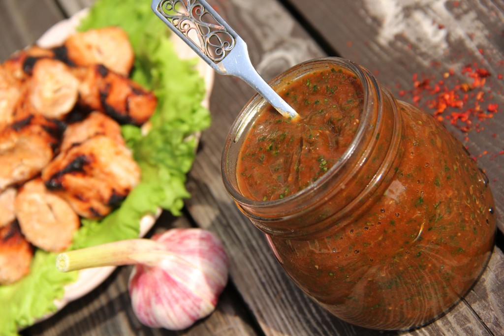 Переложить красный соус, приготовленный из томатной пасты, в банку, накрыть крышкой и дать настояться 1 час в прохладном месте. По прошествии времени этот ароматный, наивкуснейший соус станет замечательным дополнением к шашлыку и другим мясным блюдам!