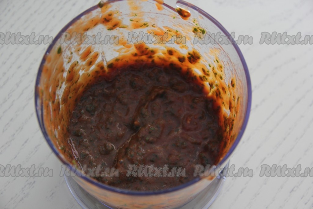 Предлагаю в качестве дополнения к шашлыку подать очень вкусный, ароматный красный соус из томатной пасты. Готовится этот соус за считанные минуты. Однако нужно дать ему настояться в течение часа, тогда он станет просто бесподобным. Кстати, такой соус можно подать не только к мясу, но и к рыбе, очень вкусно намазать его на лаваш.