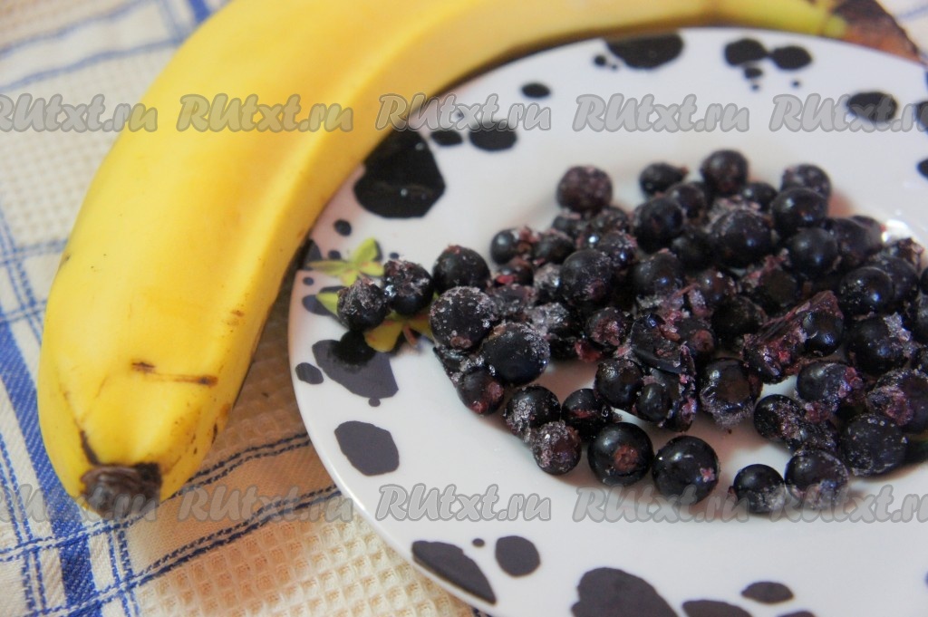Подготовить банан и ягоды (если ягоды замороженные, то лучше слегка разморозить). Банан нарезать на средние кусочки.