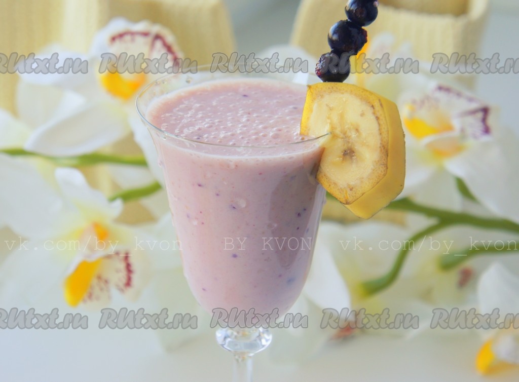 Смешать все приготовленные ингредиенты для кефирного коктейля блендером до однородного состояния.