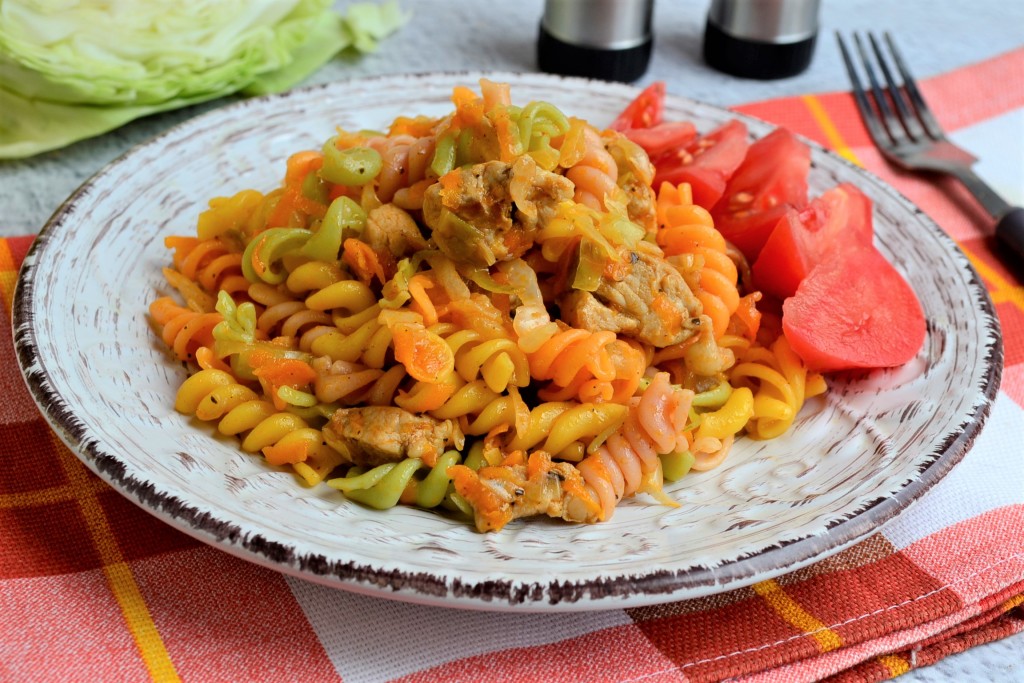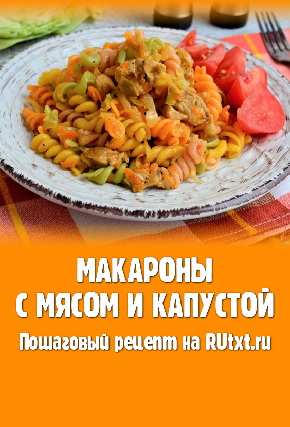 Макароны, приготовленные с мясом и капустой, - простое домашнее блюдо, которое можно подать на обед или ужин. Блюдо получается очень вкусным и сытным. Капуста здесь играет роль загустителя и передаёт макаронам свой вкус. В этом рецепте я использовала свинину, но можете заменить её на курицу или взять другое мясо. Приготовьте это простое повседневное блюдо и насладитесь его вкусом!