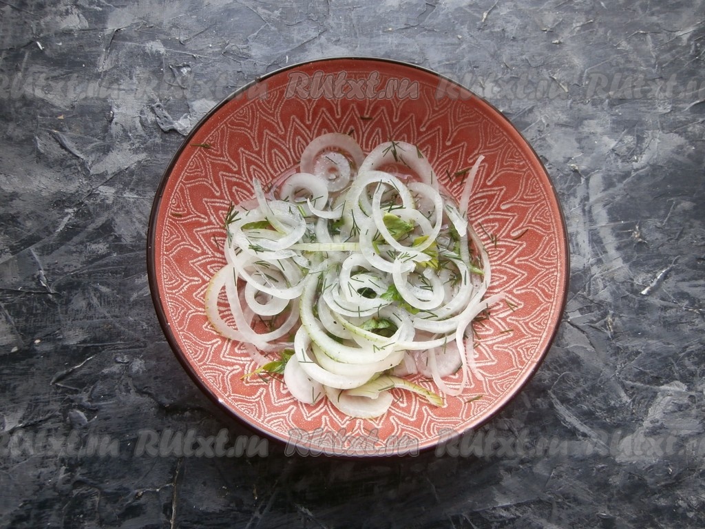 Тщательно перемешать и оставить лук на 15 минут (или больше).