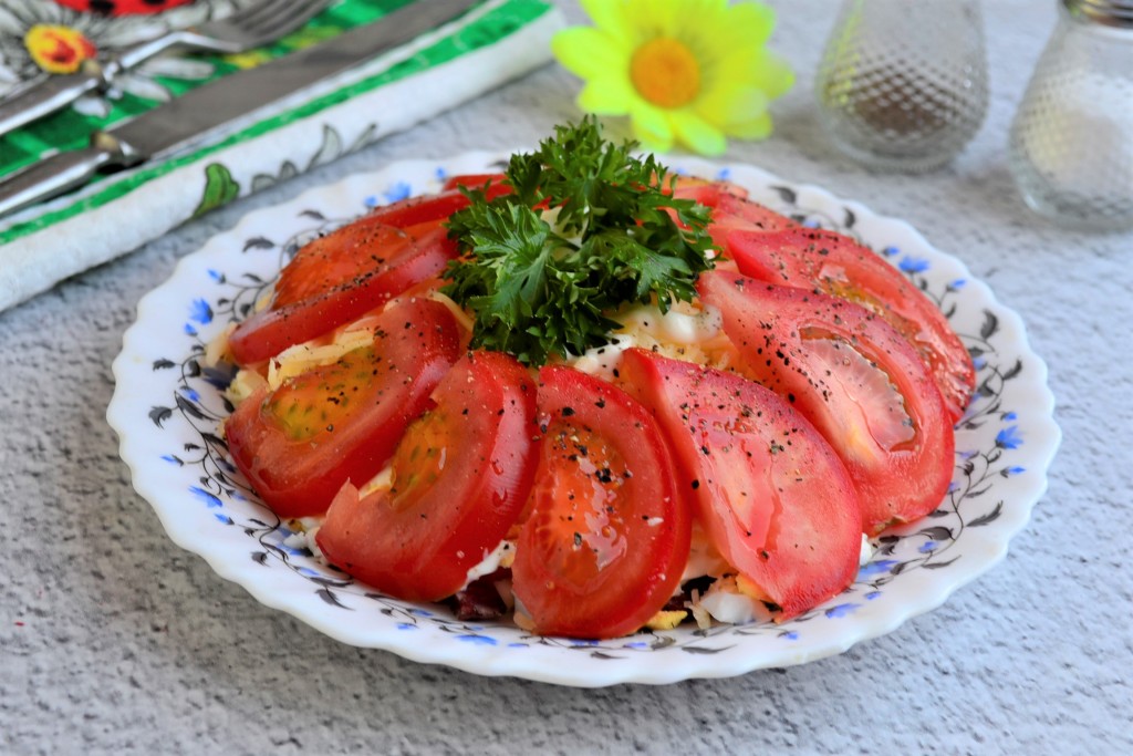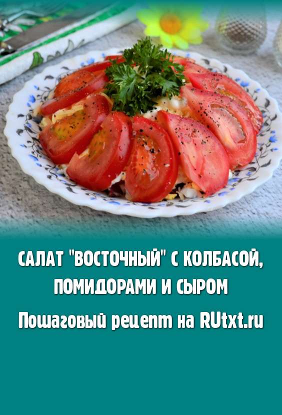 Рекомендую попробовать достаточно простой, но очень вкусный слоёный салат "Восточный" с колбасой, помидорами и сыром. Этот лёгкий и одновременно сытный салатик выглядит ярко и понравится многим. Для этого салата нужно выбирать колбасу хорошего качества и вкусные, сладкие, мясистые помидоры. Майонез в рецепте можете заменить на сметану, к которой добавьте чуточку готовой горчицы.