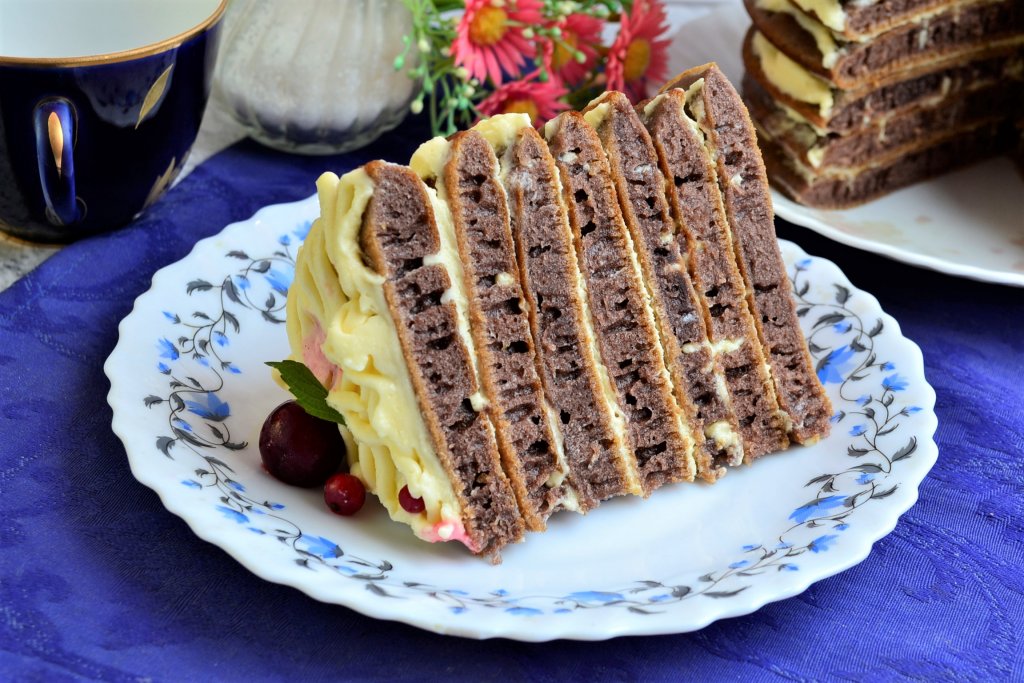 Таким же образом приготовить все коржи (у меня получилось 7 штук). Они получаются очень нежными, достаточно пышными.