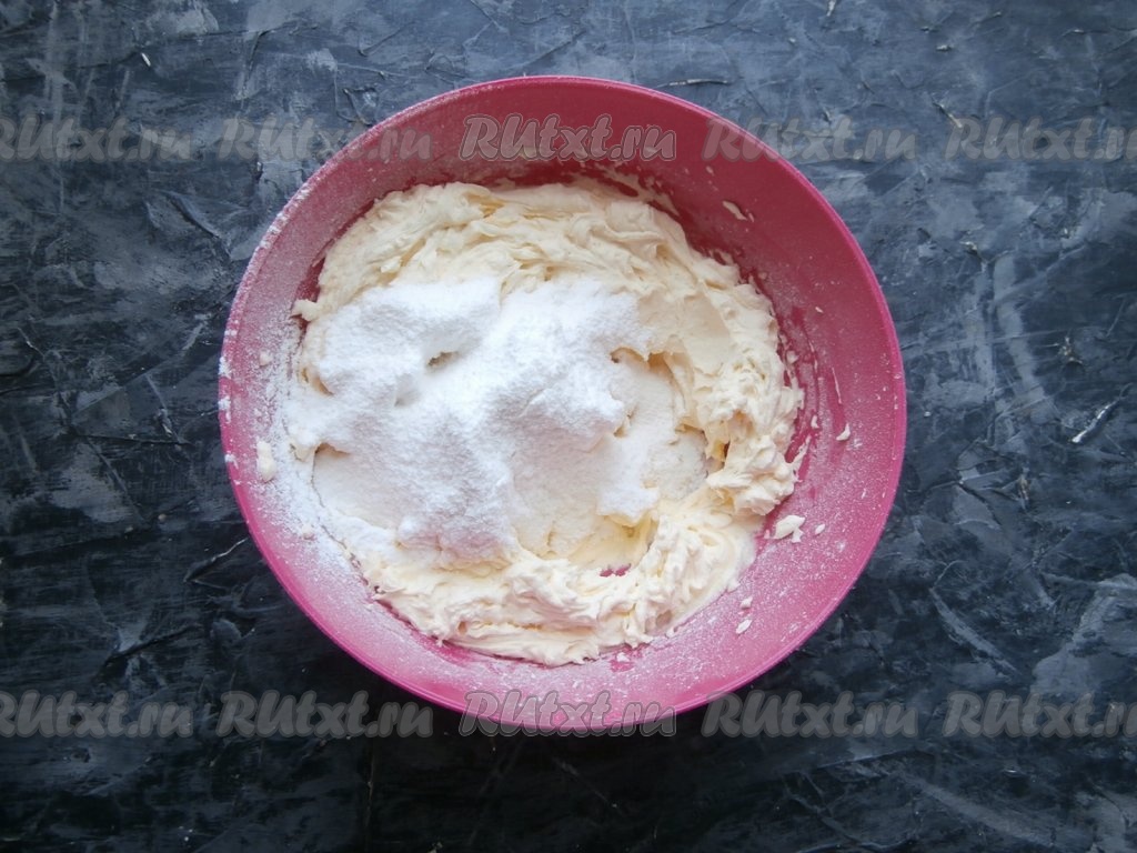 Взбить сметану миксером на низкой скорости в течение 2-3 минут, затем добавить ванильный сахар, сахарную пудру и, по желанию, пару капель ароматизатора.