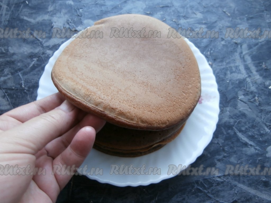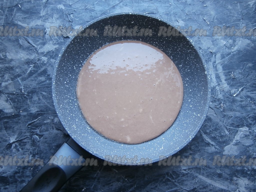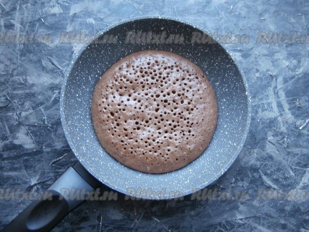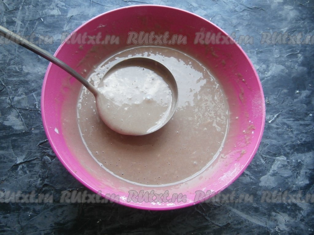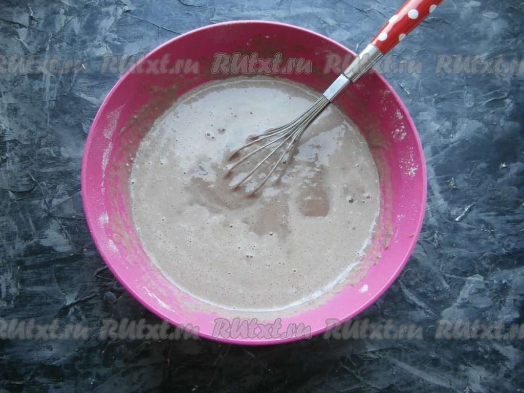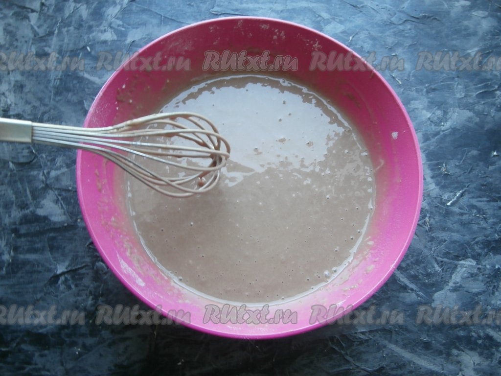 Шоколадное тесто получится достаточно жидким, чуть гуще, чем для блинов.