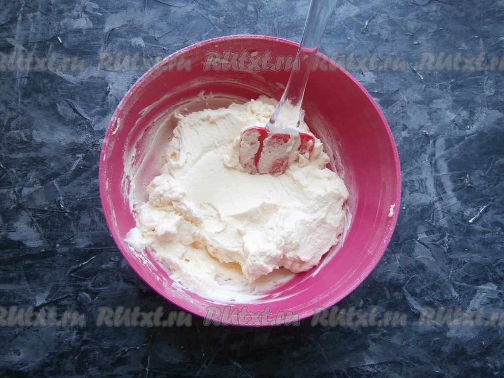 Далее взбивать сметанный крем на высокой скорости миксера до пышности и гладкости. Мне для этого понадобилось около 1-2 минут.