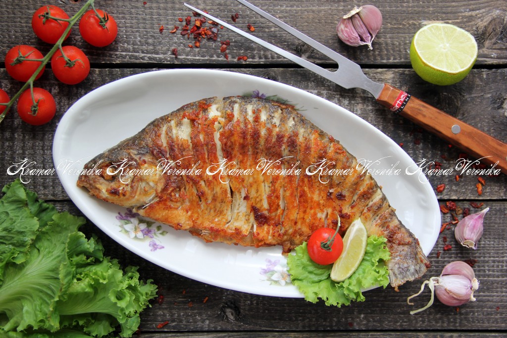 Переложить жареную рыбу со сковородки на блюдо и подать к столу в горячем виде. Вот так быстро и просто можно приготовить наивкуснейшего леща с хрустящей, аппетитной корочкой на сковороде целиком.