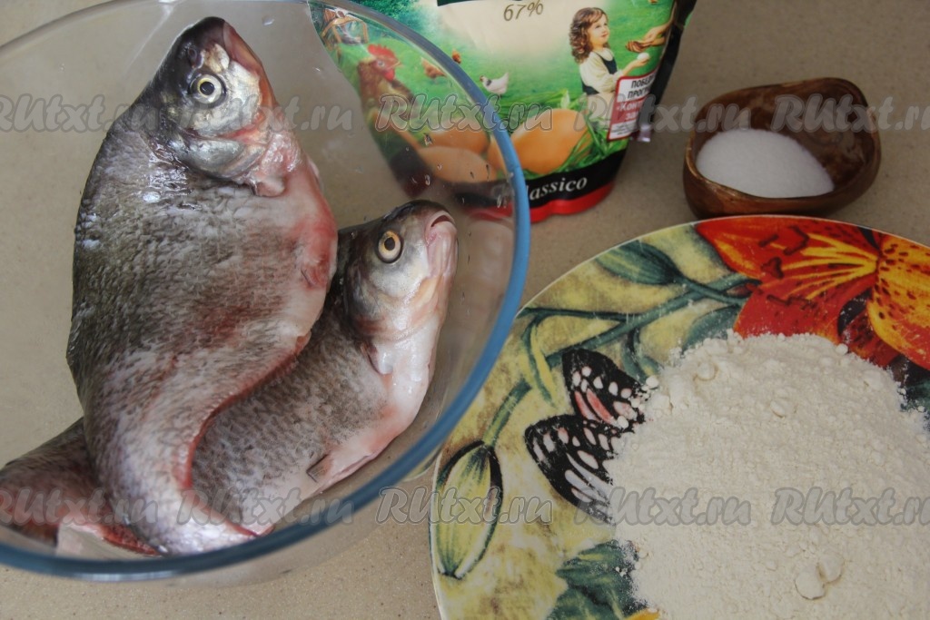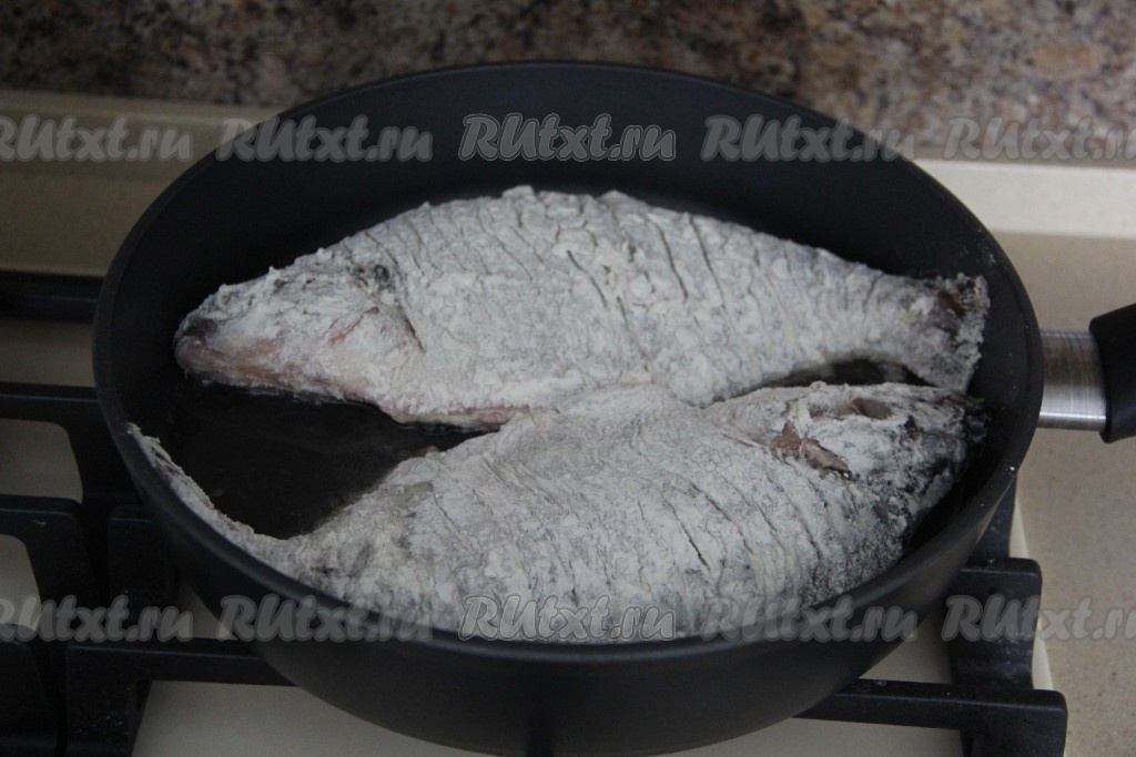 Обвалять леща в муке со всех сторон.