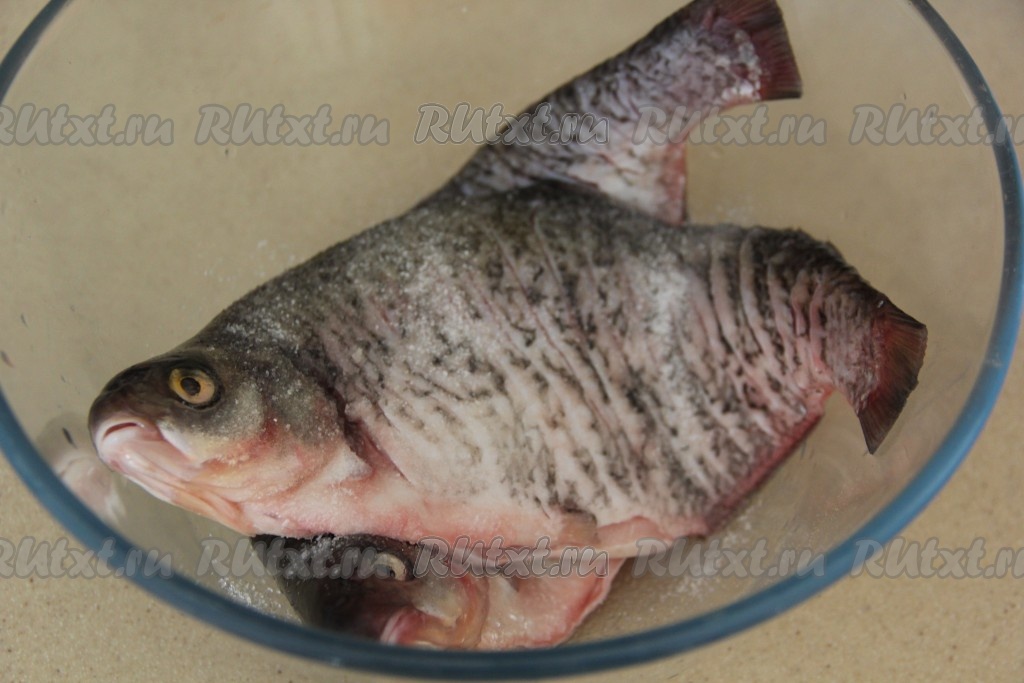 Натереть рыбу солью со всех сторон.