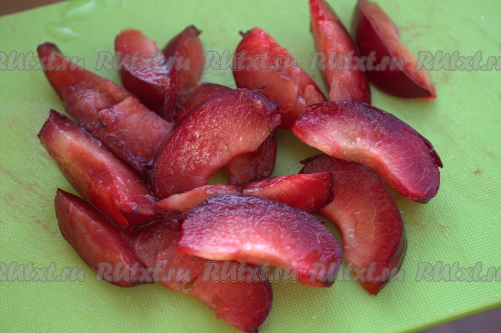 Нарезать сливы дольками желаемого размера.