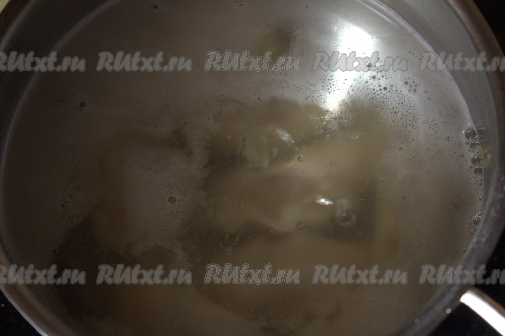 В кастрюле довести воду до кипения, слегка подсолить. Поместить в кипящую воду вареники. Варить на среднем огне с момента закипания в течение 4-5 минут. Готовые вареники достать из кастрюли шумовкой.