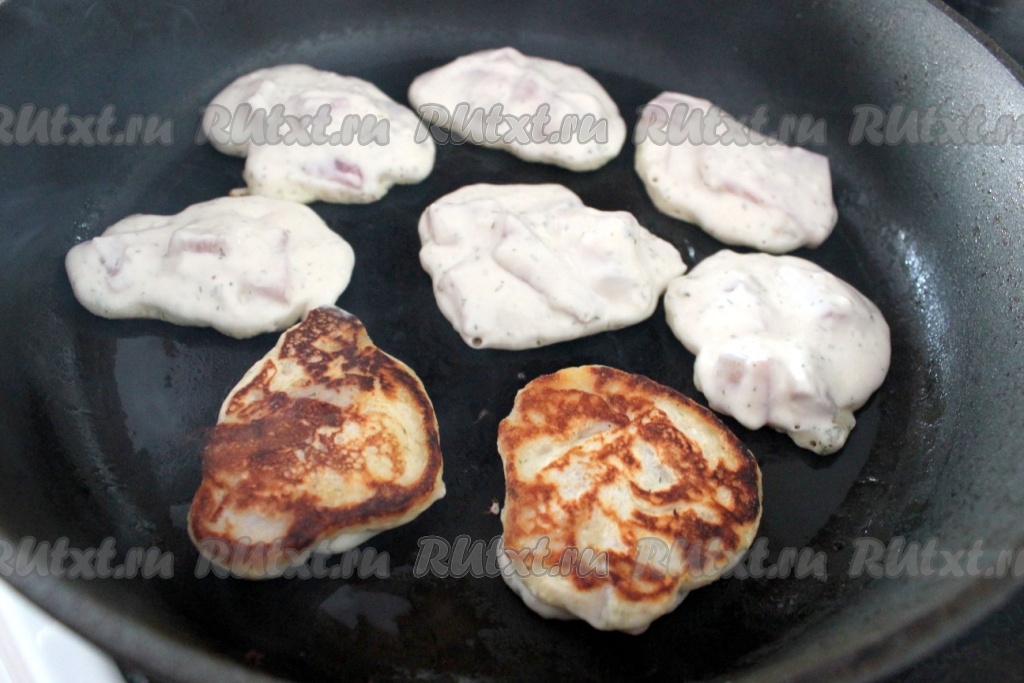 На сковороду влить немного растительного масла, хорошо разогреть. Столовой ложкой выкладывать на сковороду рыбу в кляре в виде оладий. Жарить рыбное филе в тесте с двух сторон на среднем огне до золотистой корочки. Чтобы удалить лишний жир, можно сразу выкладывать "оладушки" на бумажное полотенце.