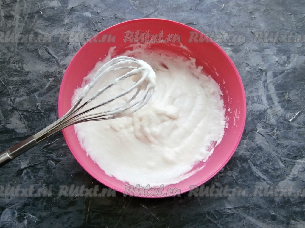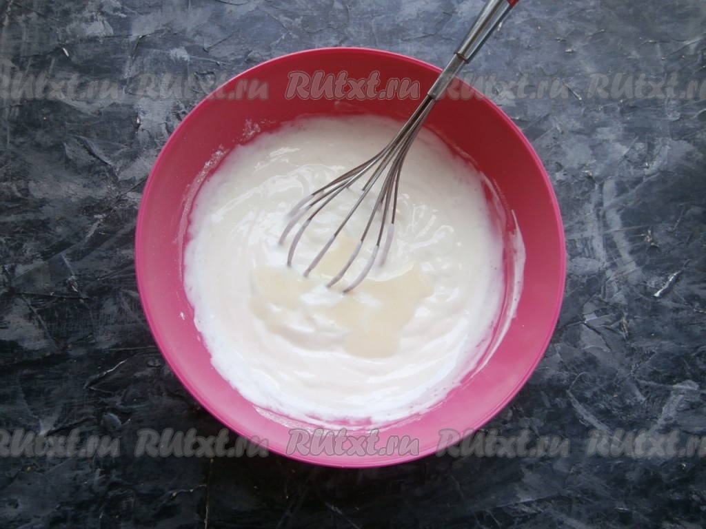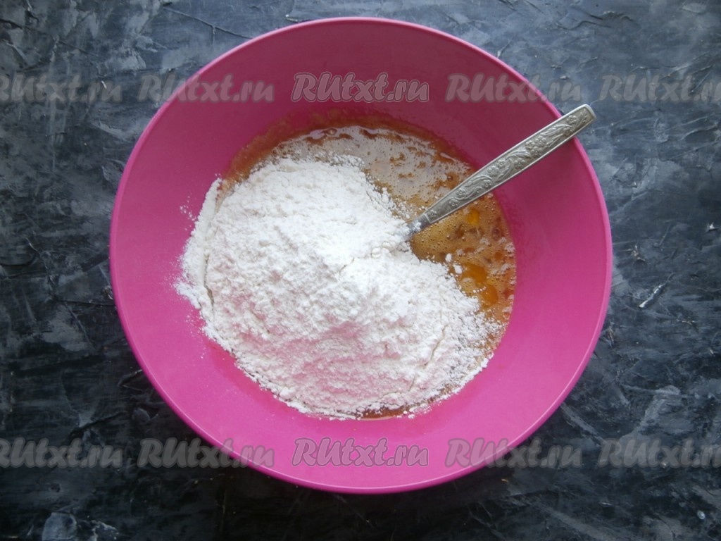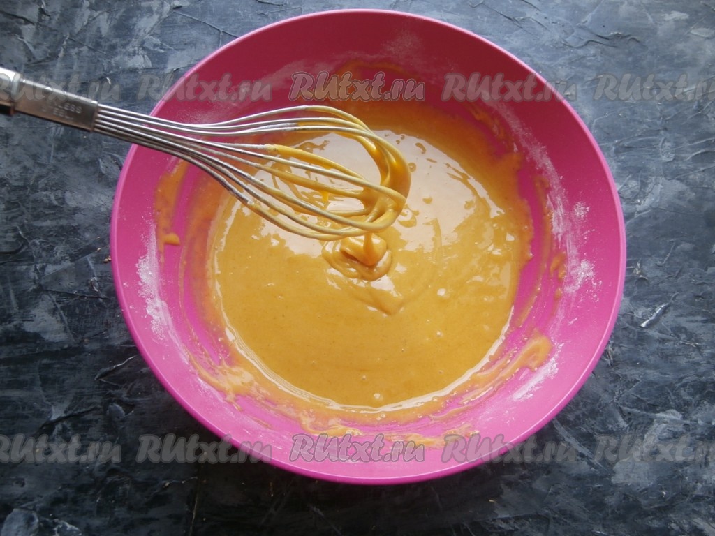 Венчиком замесить вязкое, медленно стекающее с ложки тесто.