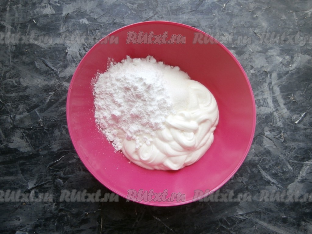 И сразу же сметанный крем перемешать, он немного загустеет. Поместить крем минут на 5-10 в холодильник.