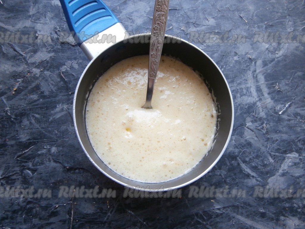Далее растопить набухший желатин, помешивая и не доводя до кипения, на среднем огне на плите (можно растопить и в микроволновке).