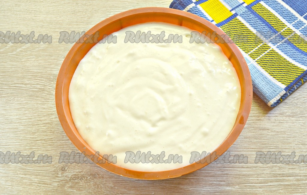 Заливаем яблоки и смородину тестом и ставим форму в духовку, прогретую до 180 градусов.