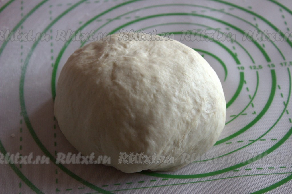 Хорошо перемешать и, небольшими порциями добавляя оставшуюся муку, замесить тесто. Муки может понадобиться немного меньше или больше. Добавляя муку, ориентируйтесь на консистенцию замешиваемого теста, оно должно получиться гладким, эластичным и нежным. Сформировать тесто в шар, выложить в удобную миску, накрыть полотенцем и убрать в тёплое место на 1 час (тесто должно увеличиться в объёме, примерно, вдвое).