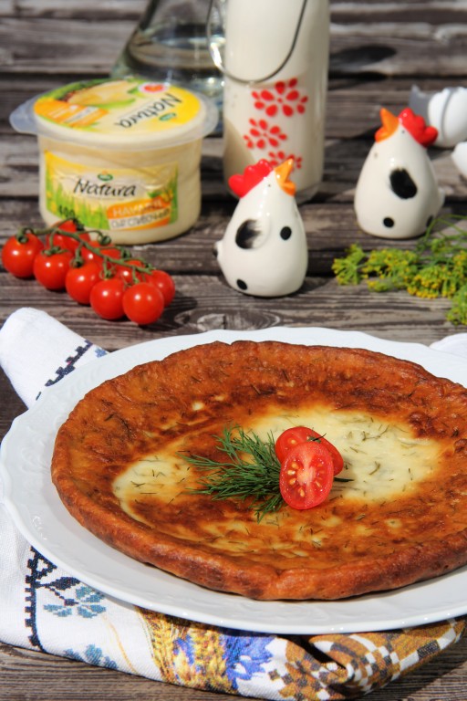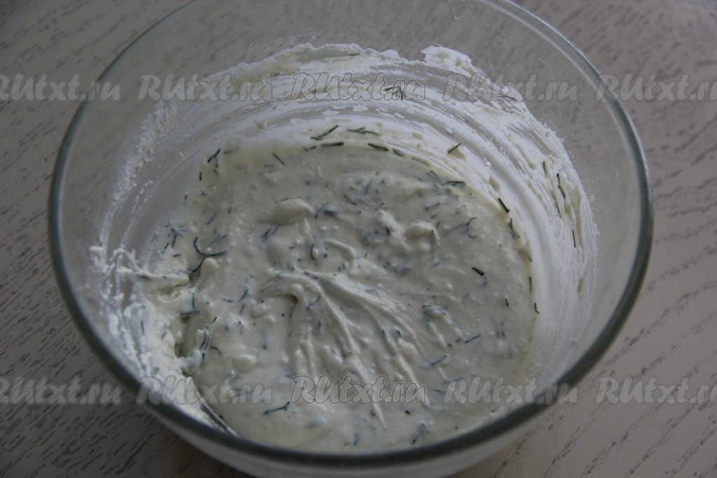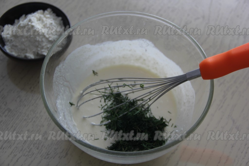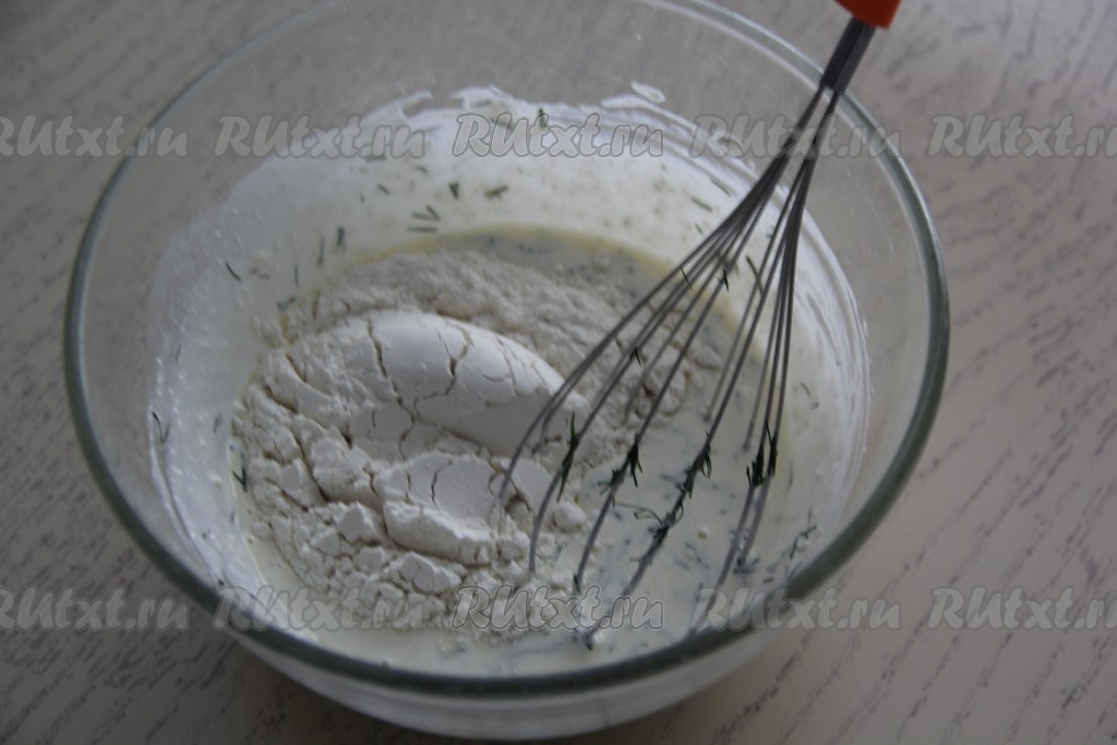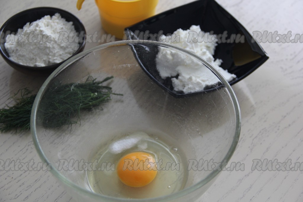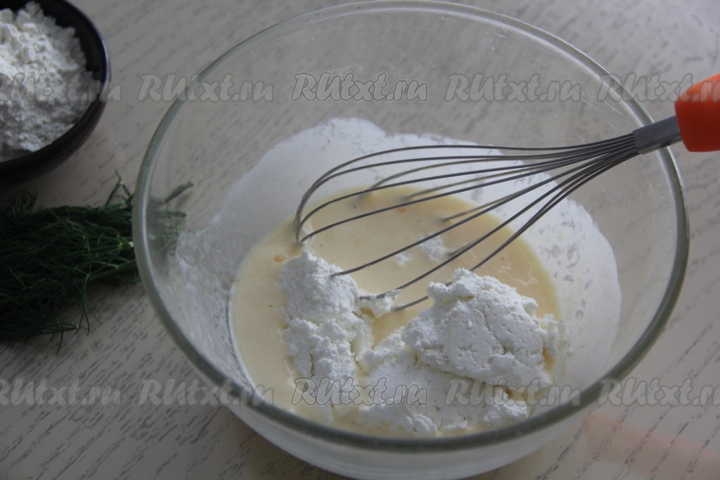 Когда смесь творога, яиц и кефира станет однородной, добавить мелко нарезанный укроп, перемешать.