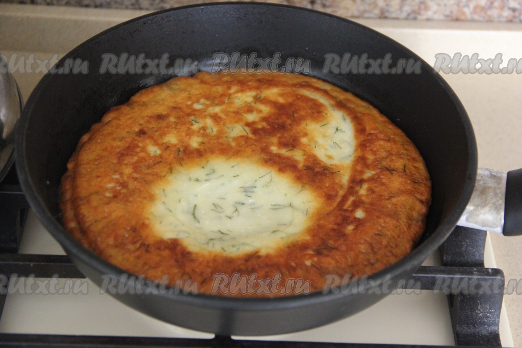 Затем перевернуть хачапури и жарить ещё 5 минут под крышкой.
