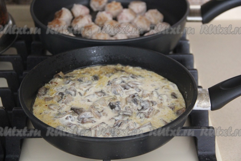 Залить тефтели сверху грибным соусом.