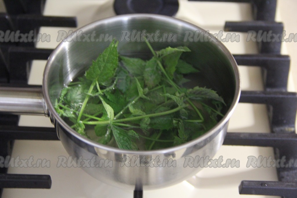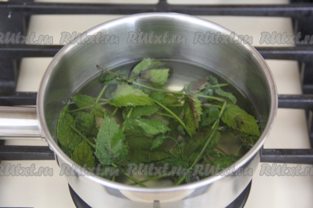 Мяту промыть под водой. Добавить мяту в горячий сироп и оставить до полного остывания.