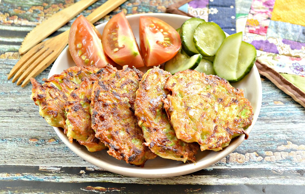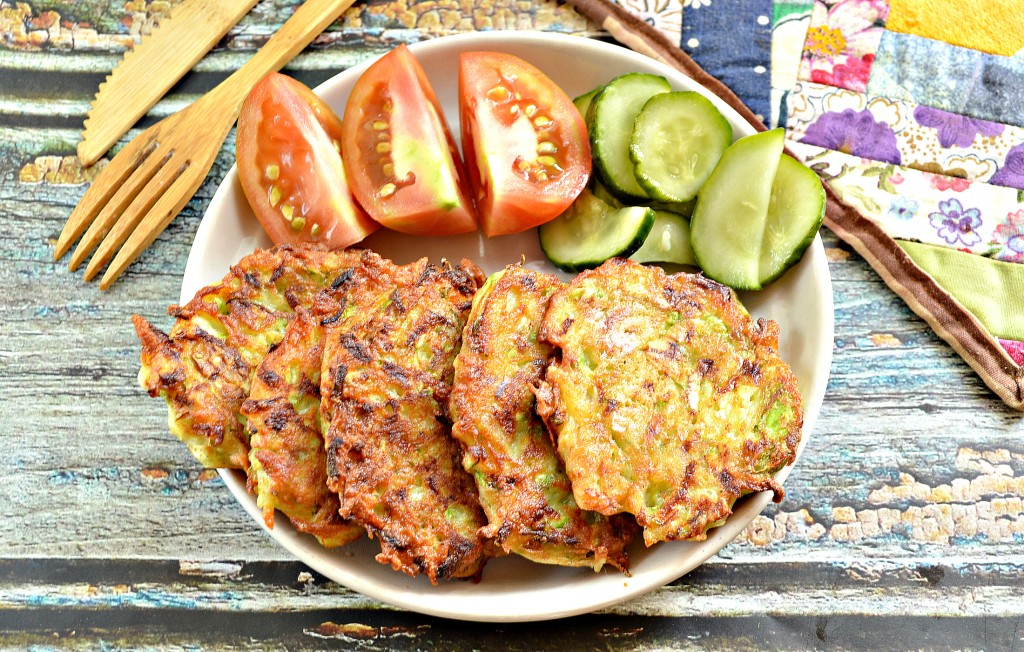 Драники, приготовленные из кабачков и картошки, хороши на вкус и горячими, и полностью остывшими.