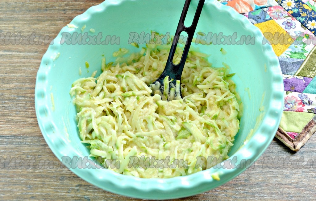Картофельно-кабачковое тесто должно получиться вязким, при необходимости, можно добавить ещё немного муки.