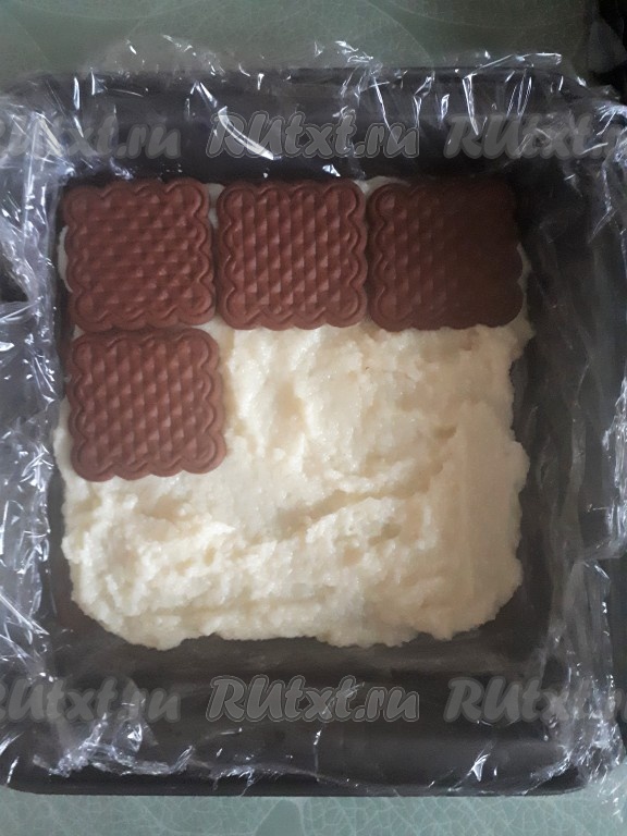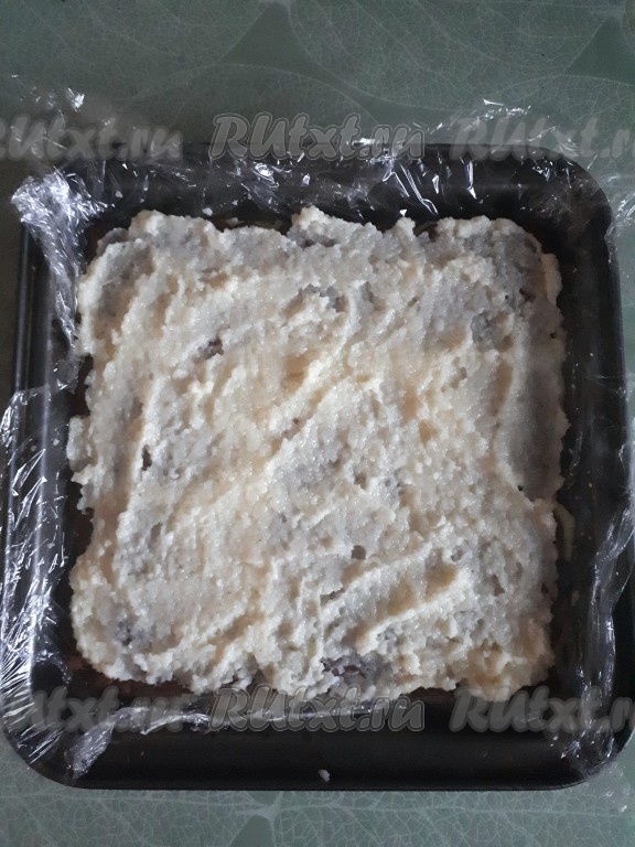 Форму, в которой будем собирать торт, застелить пищевой плёнкой.