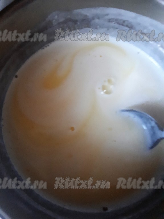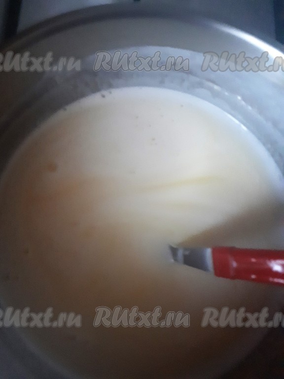 В сотейнике соединить молоко, масло и сахар, довести смесь, помешивая, на среднем огне до кипения.