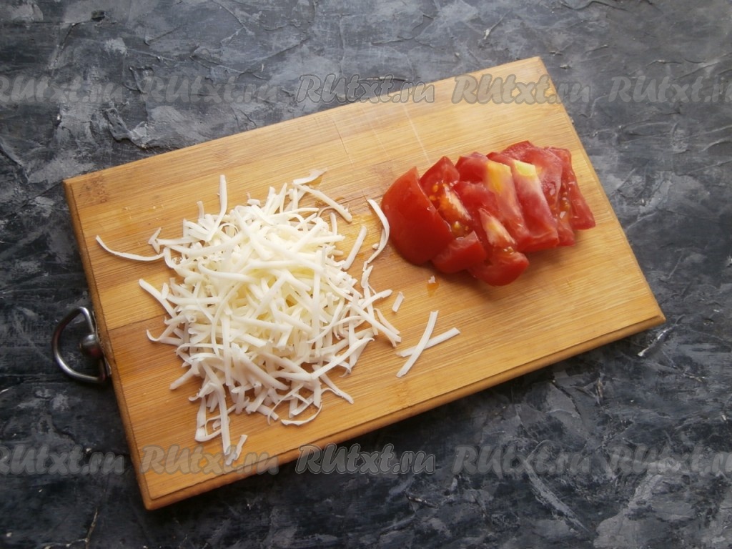 Тщательно перемешать овсяно-молочную массу с помощью вилки до однородности. Тем временем, помидор нарезать тонкими полукружочками, сыр натереть на тёрке.