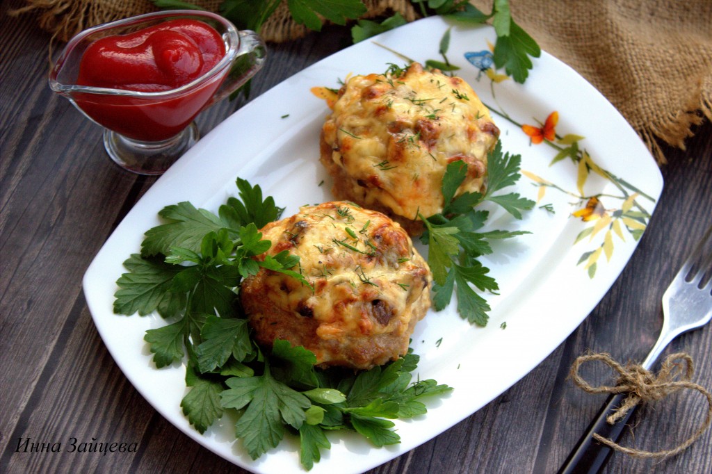 Сегодня предлагаю приготовить невероятно вкусные, аппетитные, сочные мясные ватрушки с грибами и сыром. По сути, это котлеты из фарша с небольшим углублением, в которое помещается грибная начинка, покрытые сверху аппетитной сырной корочкой. Но благодаря тому что блюдо внешне напоминает всем известную выпечку, такие котлетки и назвали "ватрушки". Мясной фарш и грибочки подойдут любые. Обжаренные с луком грибы придают блюду сочность и аромат. Такие мясные ватрушки обязательно понравятся вам и вашей семье!