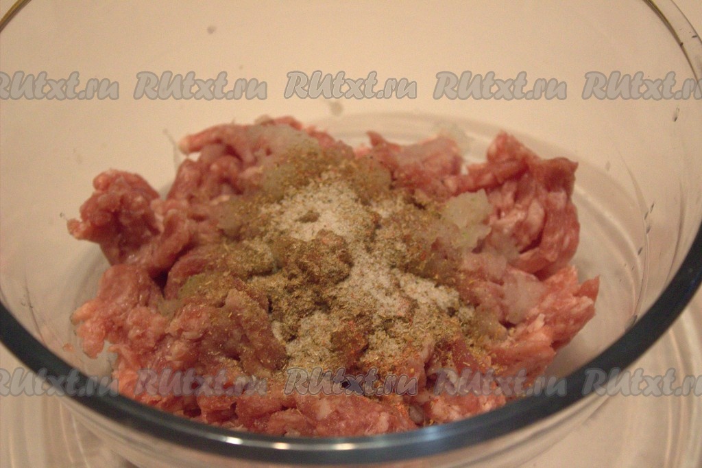 Добавить в фарш специи по вкусу, посолить (я использовала универсальную приправу).
