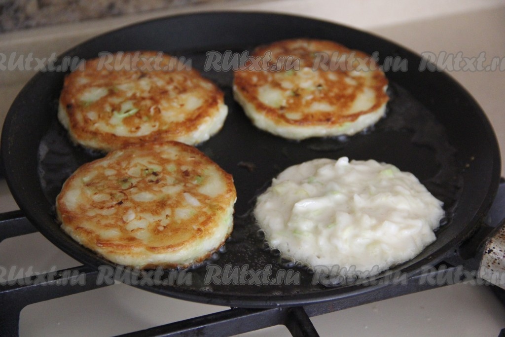 Сковороду разогреть, добавить растительное масло. Выкладывать по 1,5 столовых ложки капустного теста в виде оладий.