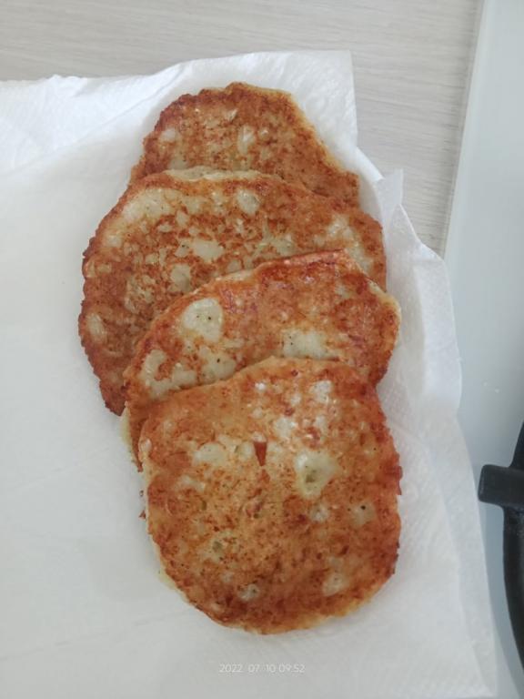 Готовить оладьи из молодой капусты до румяности с двух сторон. Жарятся оладушки на среднем огне достаточно быстро, примерно, по 2-3 минуты с каждой стороны. Румяные оладьи со сковороды переложить на тарелку, а из оставшегося теста пожарить постепенно все капустные оладьи.