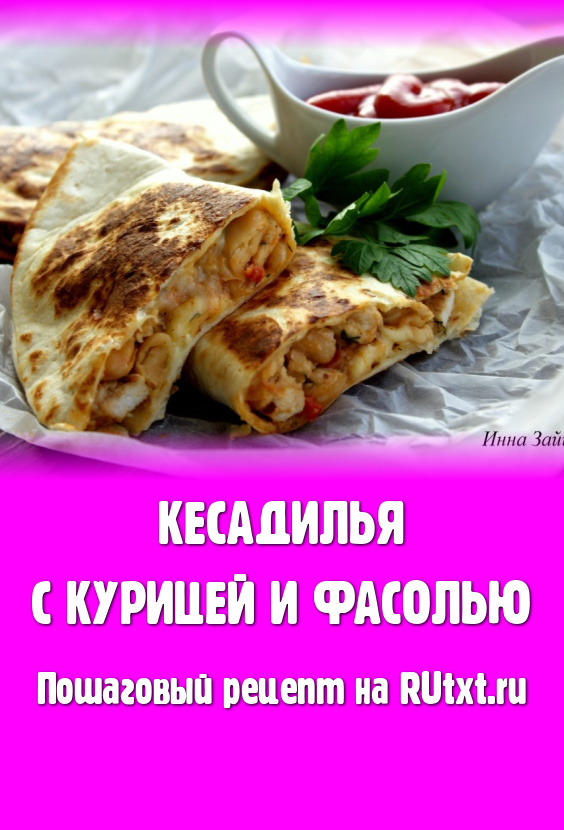 Предлагаю приготовить блюдо мексиканской кухни - кесадилью с курицей и фасолью. По сути, это лепёшка тортилья с начинкой из сыра и куриного филе, обжаренного с фасолью. Перед подачей кесадилья обжаривается на сухой сковороде и подаётся горячей с вашим любимым соусом. Приготовьте это сочное, сытное блюдо и вы точно останетесь довольны его вкусом!