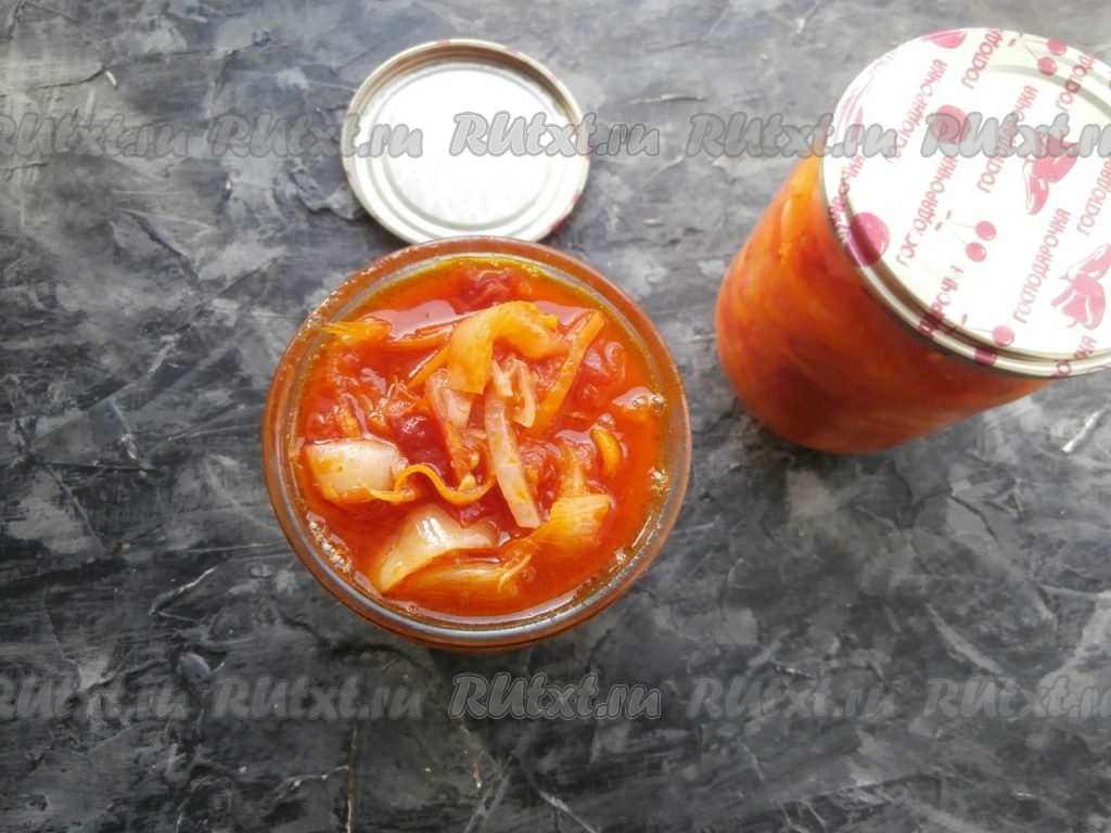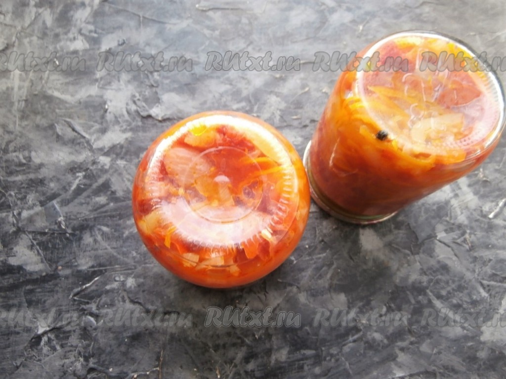 Разложить салат "Витаминный" по простерилизованным банкам вместе с жидкостью.