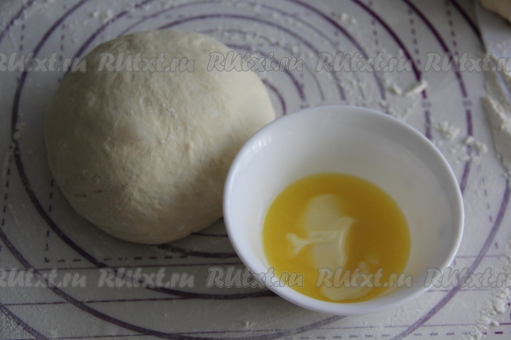 Масло сливочное растопить (оно не должно быть горячим). Тесто обмять.