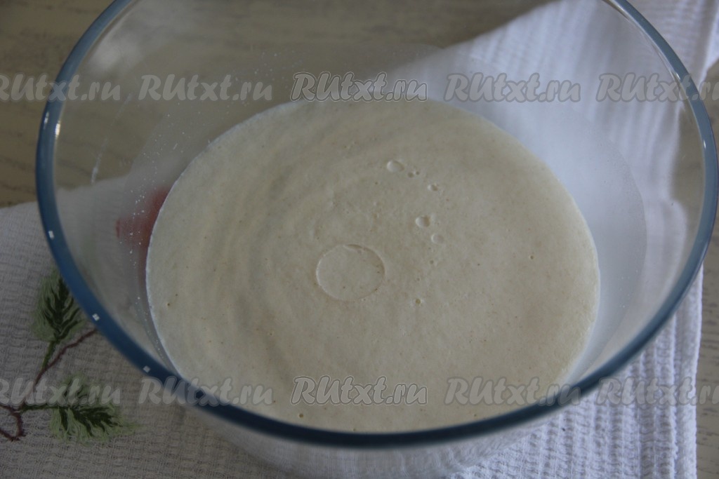 Дрожжи за это время активируются и на поверхности опары образуется пышная шапочка.